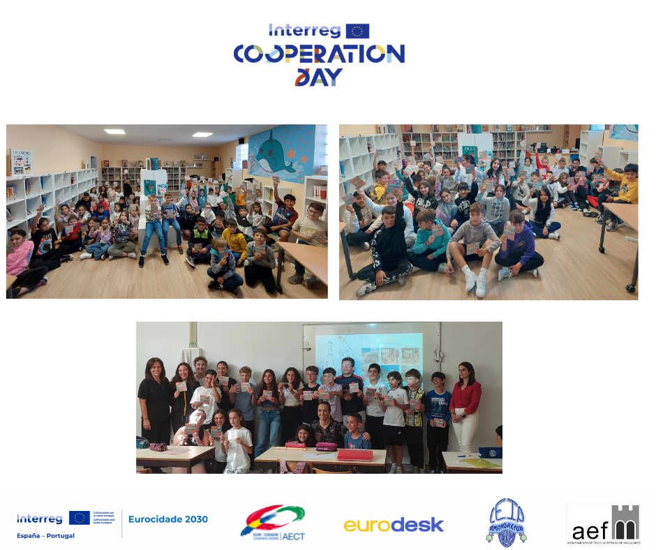 A Eurocidade Chaves-Verín, AECT, realizou no dia de ontem uma ação sensibilização com os alunos do 4.º e 5.º anos do CEIP Plurilingue Amaro Refojo, em Verín, e com os alunos do 7.º ano da Escola Secundária Fernão de Magalhães, em Chaves, no âmbito do Dia da Cooperação Interreg, celebrado no dia 21 de setembro. A comemoração deste dia tem como objetivo principal aumentar a visibilidade e a importância dos projetos de cooperação europeia junto das comunidades locais.