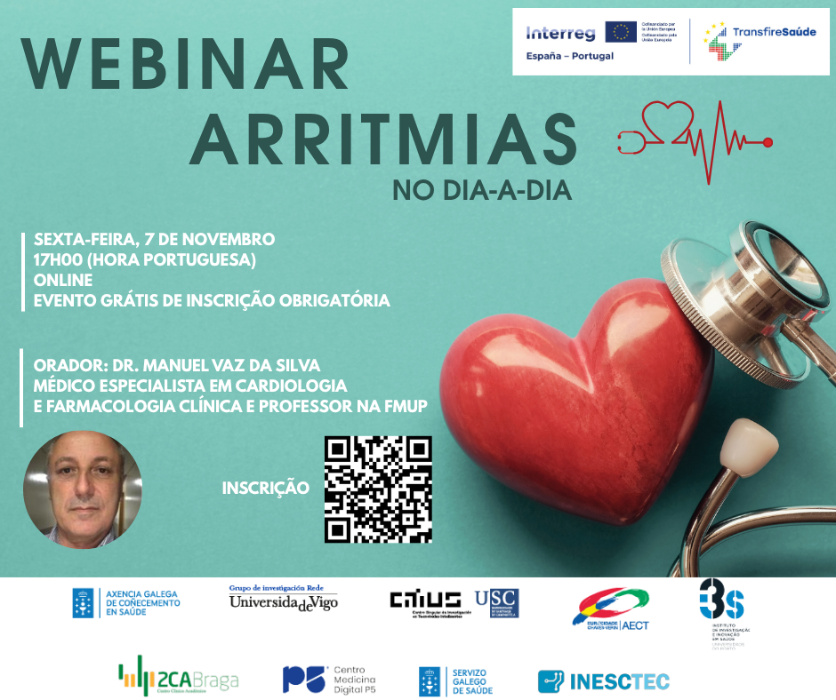 O evento, em formato online, é organizado pelo Instituto de Investigação e Inovação em Saúde da Universidade do Porto (i3S), parceiro do projeto, e tem como tema central as arritmias, causa frequente de consultas em cardiologia.